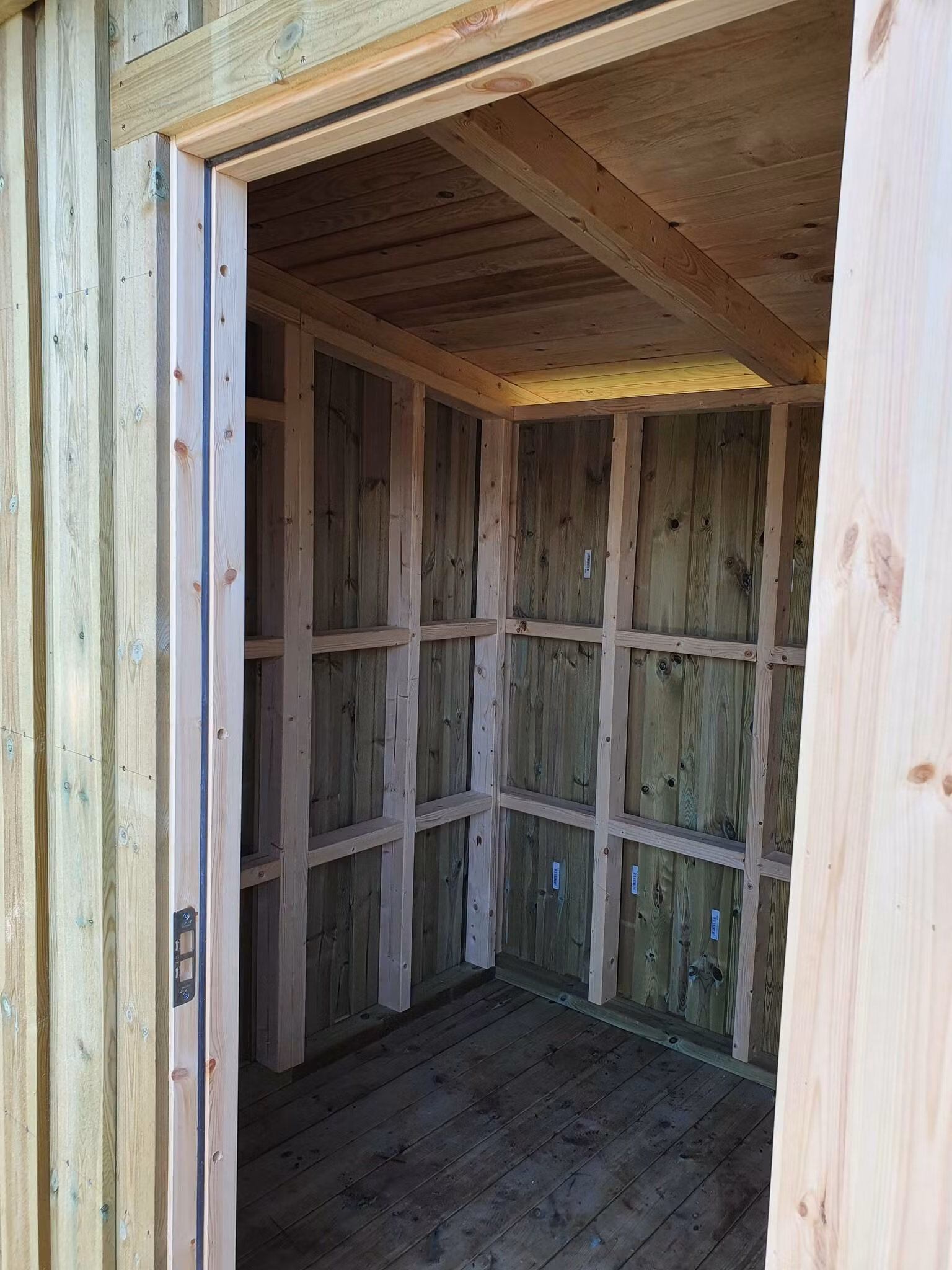 Boden leveres i moduler for rask og enkel montering. Alle materialer som brukes i produksjon er kun klasse en trevirke, og festemidler leveres fra kjente leverandører. Montering av bod kan enkelt gjøres uten bruk av fagfolk, men det er fint å være minst to personer. Våre moduler produseres på samme måte som elementhus, og er tilpasset vårt klima. Dette er boder som virkelig holder i mange år med riktig overflatebehandling.