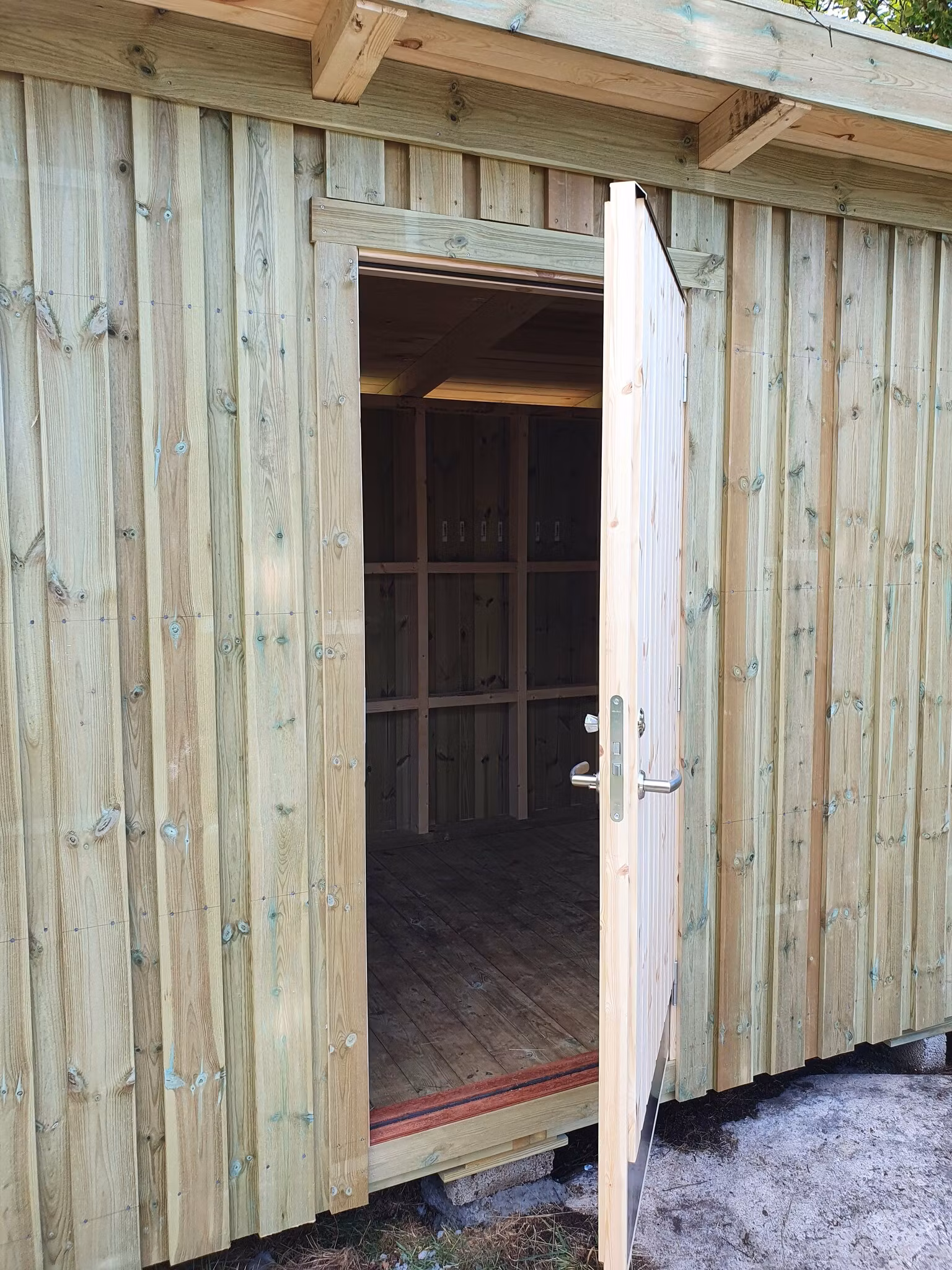 Sjøglimt fra Hvaler er en praktisk bod med god plass til hageredskaper, ved, eller annet du vil oppbevare.