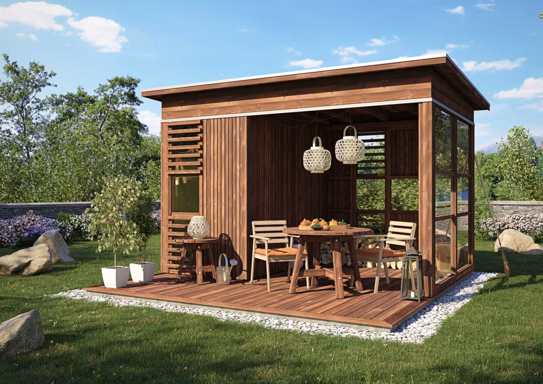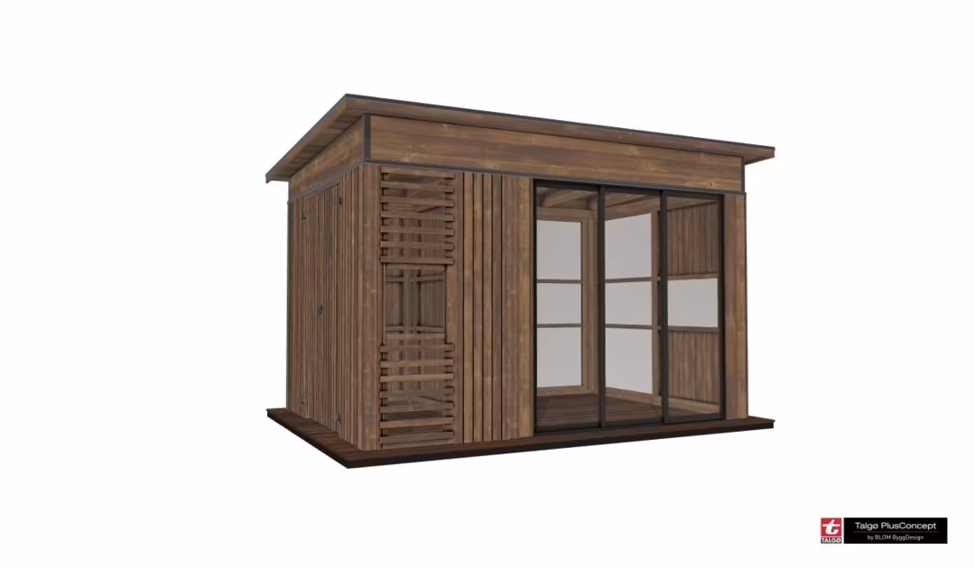 Hagestue 1801 SD med skyvedør 2,4m bred er en liten og nett hagestue med større plass enn du tror!