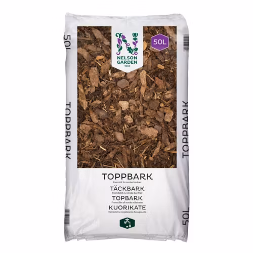 TOPPBARK Et rent naturprodukt av fersk bark. Fremhever plantene og reduserer vedlikehold. Til dekking rundt planter og trær i bed, rabatter, skråninger og