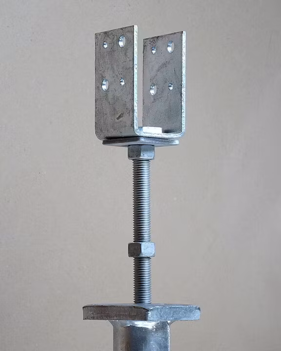 U-beslag 2" | 46mm innvendig150mm høydejustering med sekskantet topp for hylse. Sideveis justering av beslaget. Låses med kontramutter oppover og nedo