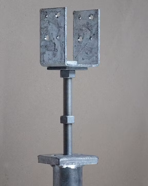 U-beslag 3" | 71mm innvendig150mm høydejustering med sekskantet topp for hylse. Sideveis justering av beslaget. Låses med kontramutter oppover og nedo