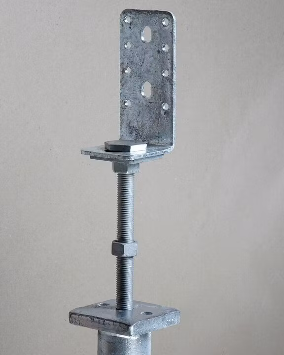 Vinkelbeslag 60x125, T = 4mm | Vinkelbeslag med gjenget bolt 150 mm for høydejustering. Sekskantet topp for ermet. Gjengestang, skive og mutter er inkludert.