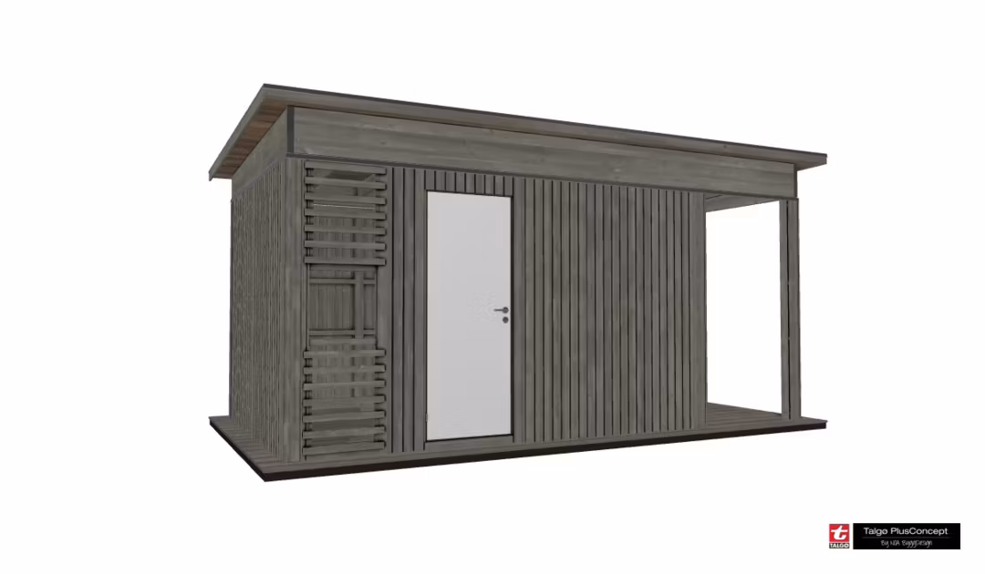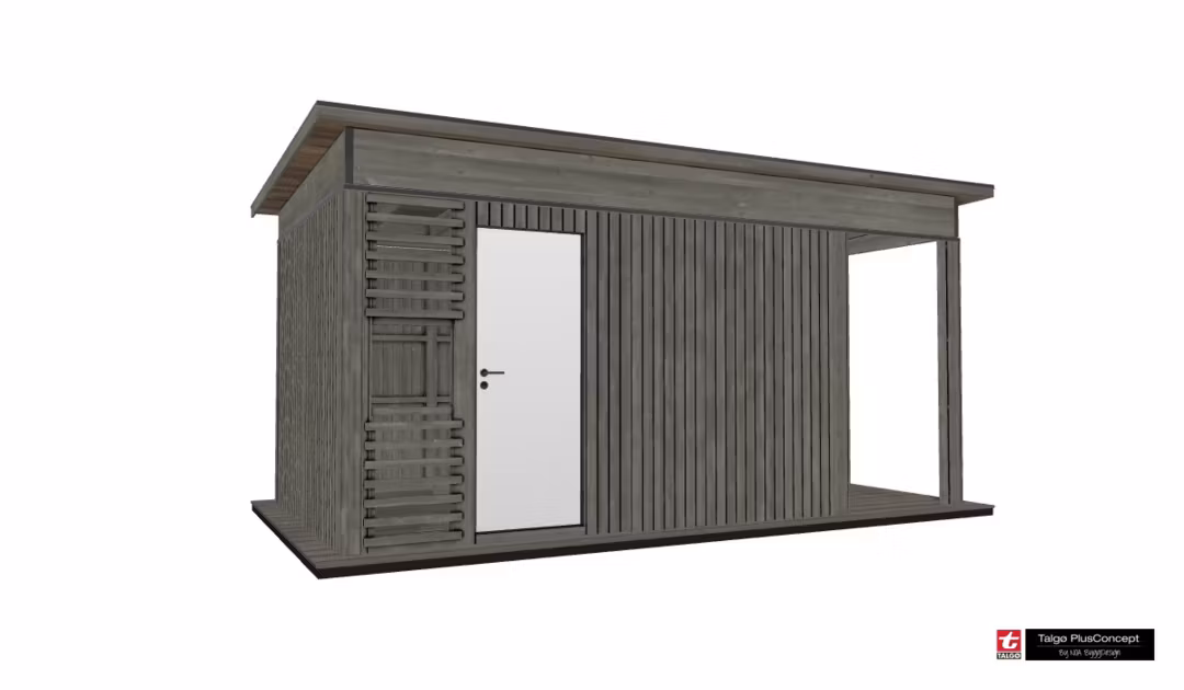 Derav en med dobbel slagdør som gir god plass for innlasting av utstyr/hagemøbler, innkjøring av gressklipper eller annet. 13,5 M2.