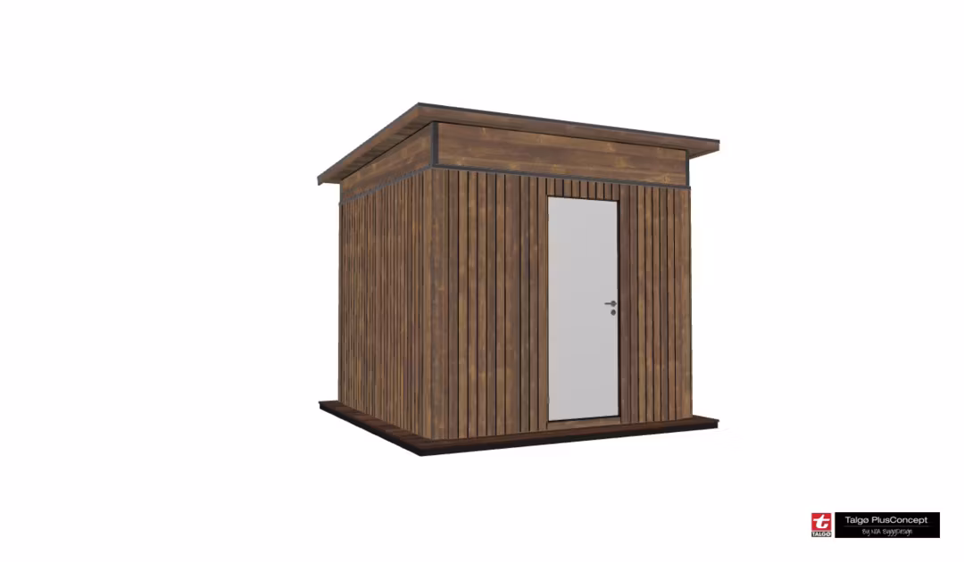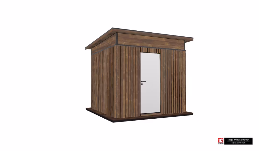 Totalmål: 266 x 266 cm – 7,1m2 Innermål: 240 x 240 cm – 5,8m2 Takmål: 304 x 302 cm – 9,2m2