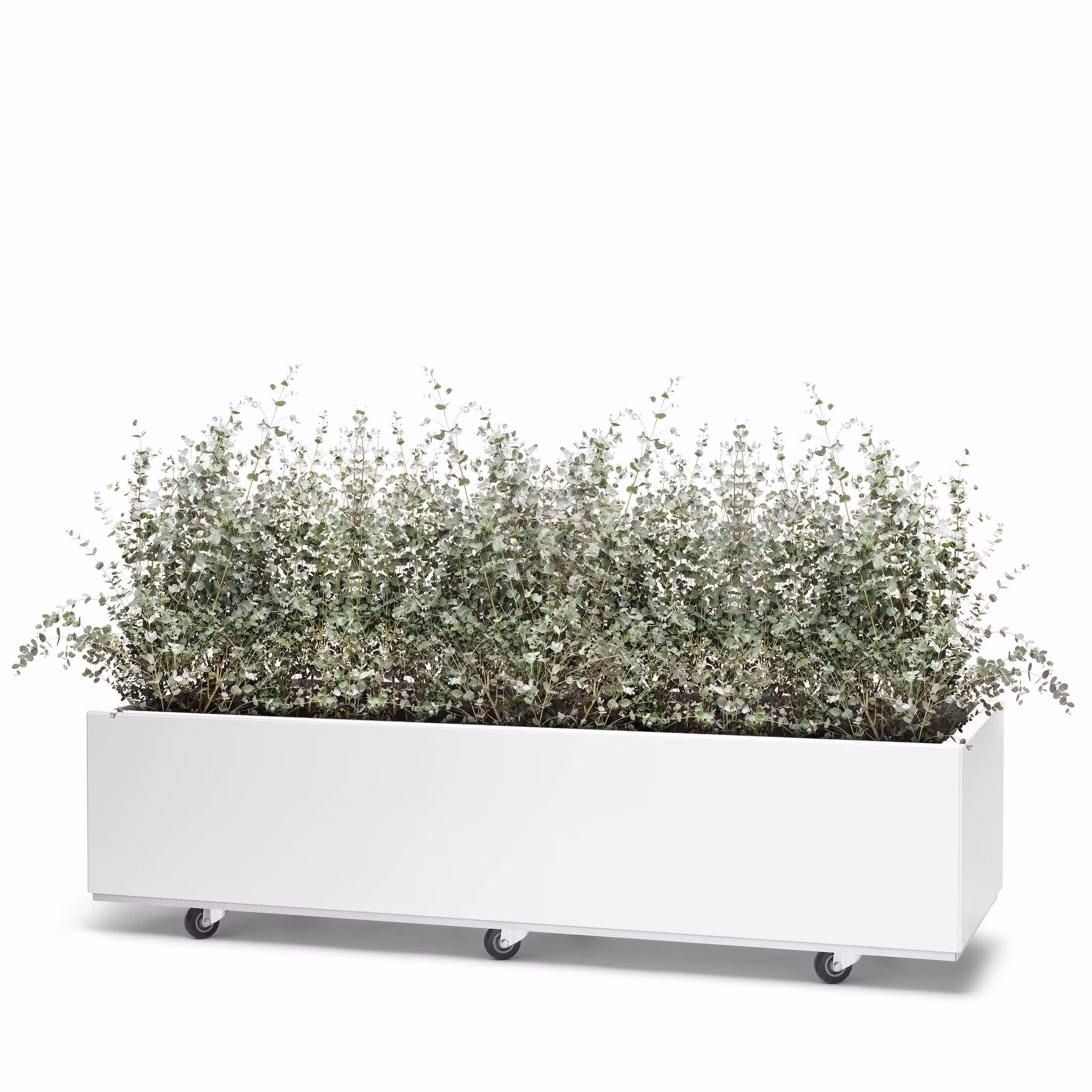 En bred og romslig kasse som gir stort areal for dyrking. Disse modellene er med drenerende bunnplate og 4 hjul eller ben.