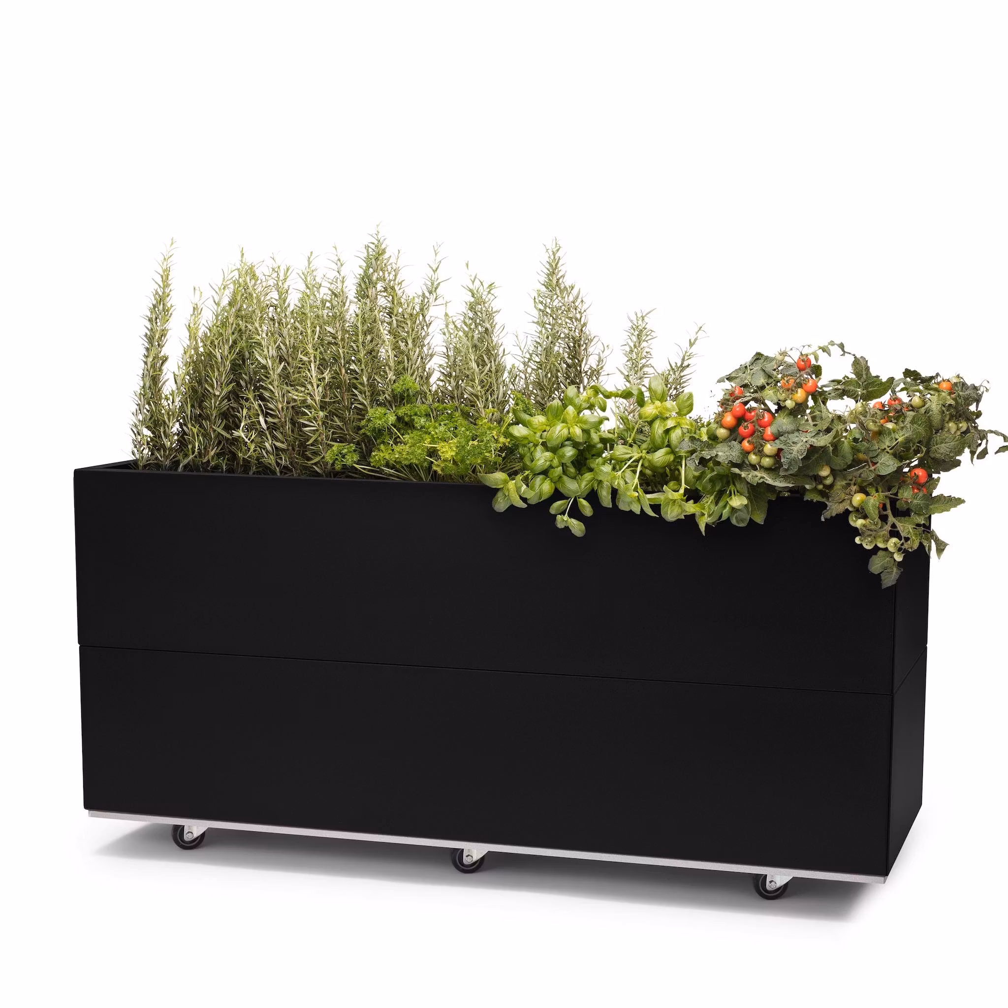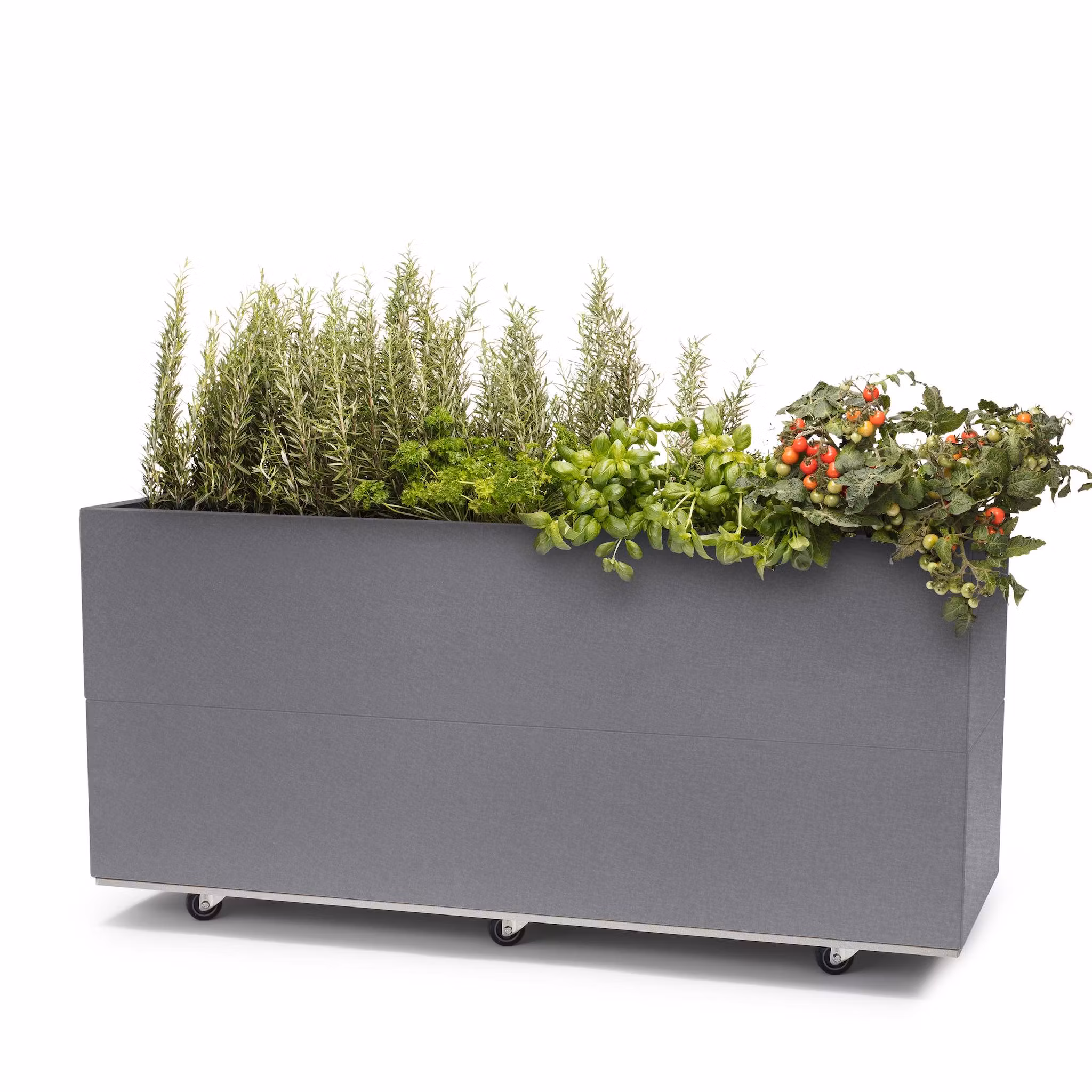 Den er lang og dyp og egner seg for busker, små trær eller andre planter med dype røtter. Høyden gjør den enkel å komme til for pleie av plantene. Disse modellene er med drenerende bunnplate og 4 hjul eller ben.