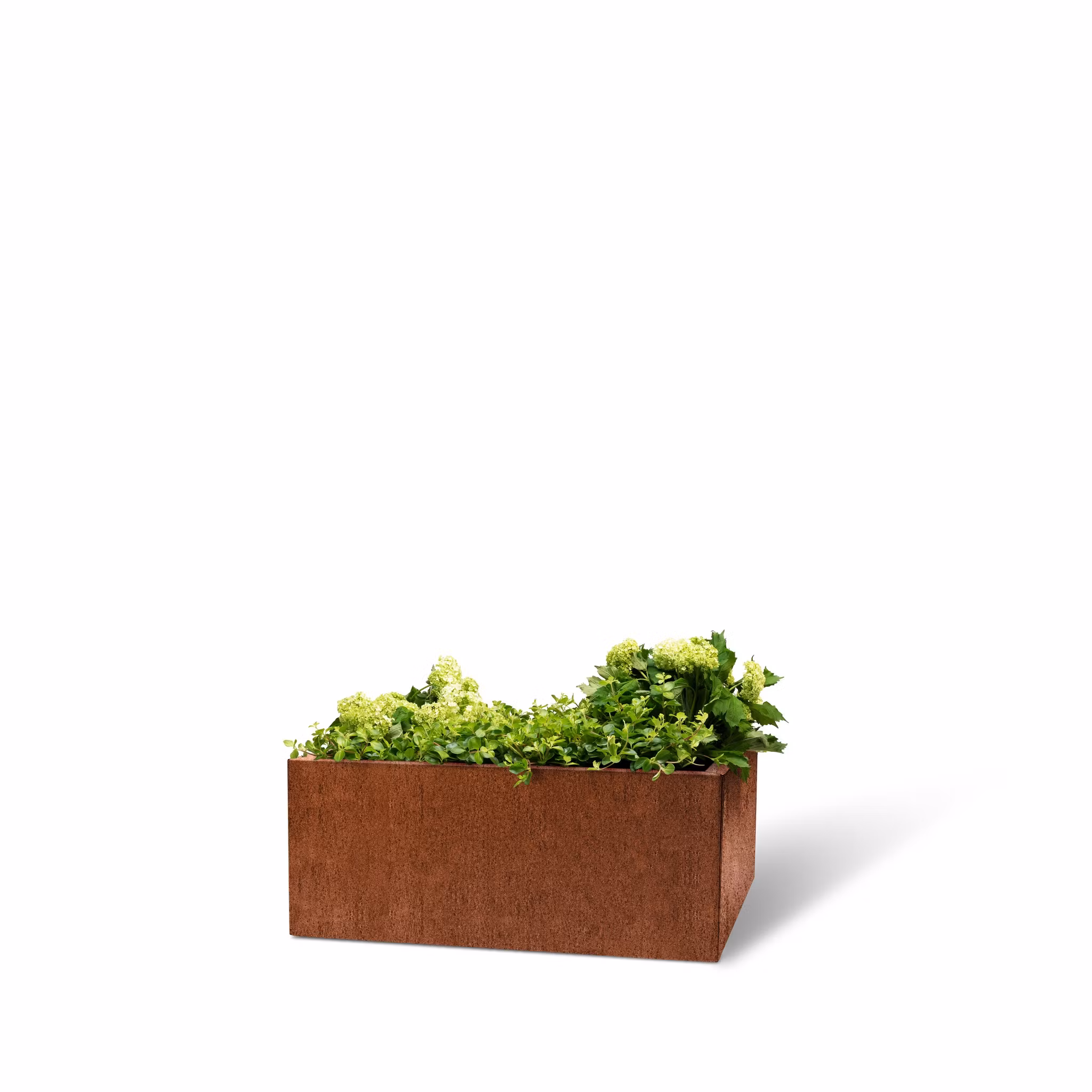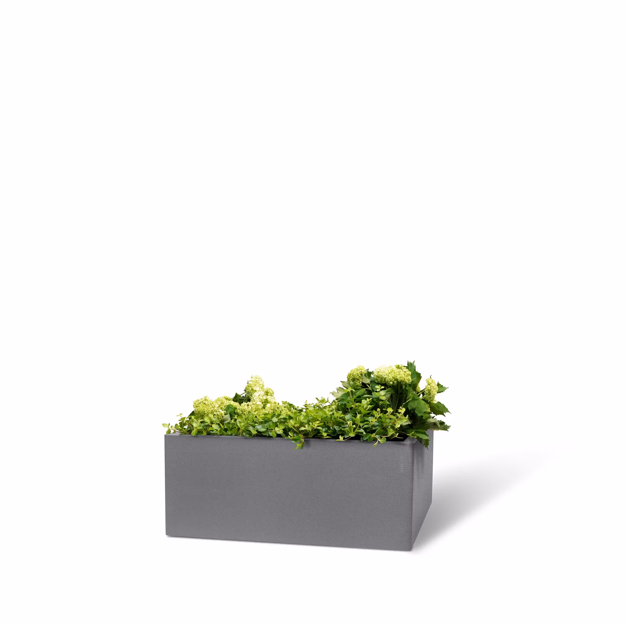 En nett, kvadratisk kasse til blomster, jordbær eller urter.