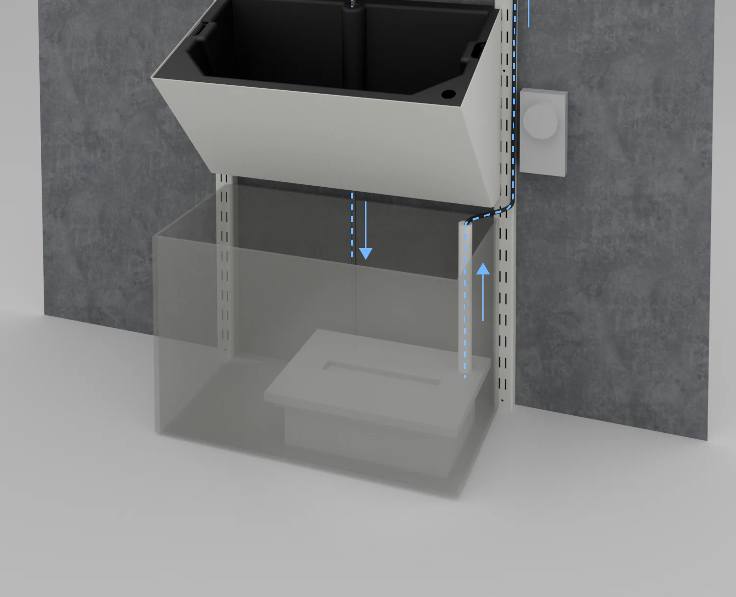 Velprøvd system og materialvalg, bl.a. fra gravlunder, o.a. Tanken gir et reservoar-volum på 20 liter – tilstrekkelig til flere uker uten tilsyn og etterfylling.