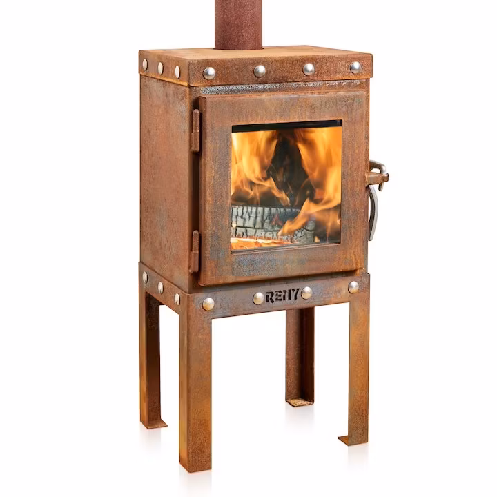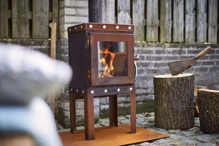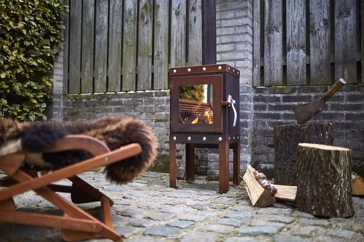 Piquia er en kompakt vedovn laget av 3mm CorTen stål med et industrielt utseende. Denne utepeisen har en galvanisert ståldørlås og rustfrie låsebolter i stål rundt - både over og under døren. Disse kontrastene passer utmerket med det varme rustfargede platematerialet. Ovnen har også askeskuff på baksiden. Siden peisen er låsbar / lukket, plages du ikke av røyk, flygende aske eller gnister på terrassen.