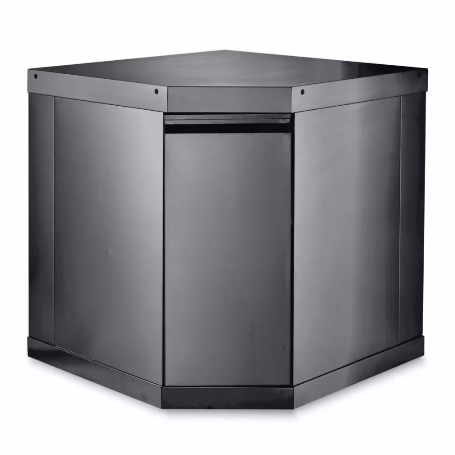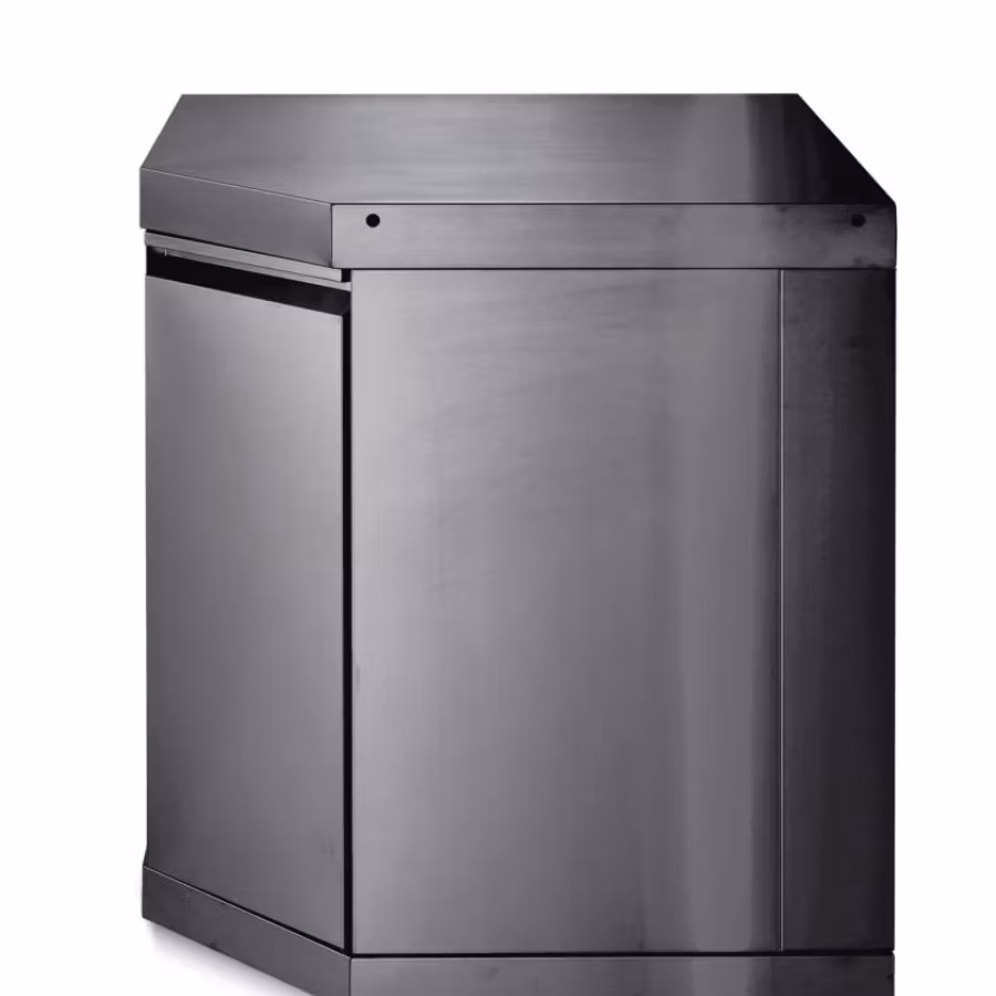 Frittstående 90 graders hjørnemodul med oppbevaringsskap. Moderne og luksuriøs antrasittgrå design. Drømmen om nabolagets flotteste utekjøkken er enkel å realisere ved å bygge inn en hjørnemodul. Hele modulen er fremstilt i rustfritt stål 304 av høyeste kvalitet. Med denne stabile hjørnemodulen kan utekjøkkenet bygges i 90° vinkel, noe som gir et utrolig åpent og rommelig område for matlaging utendørs. Perfekt passform for et hjørne på balkongen eller uteplassen.